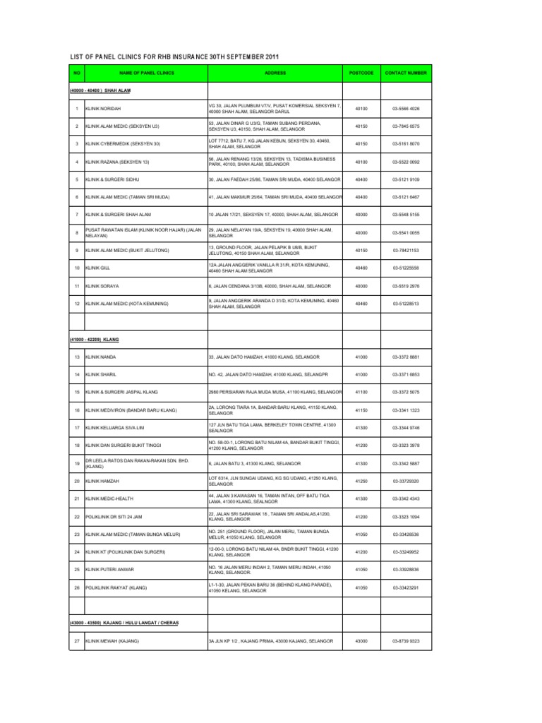 State town clinic id clinic name address tel operating hours 1 kuala lumpur jalan sultan sulaiman micare panel gp list (aso) for (december 2019) region : To all our patients who supported us despite we being off the panel. Clinics jobs openings and salary information in malaysia. Micare panel gp list (12 february 2016) no. Clinic in serving and providing patient care for all clinical.