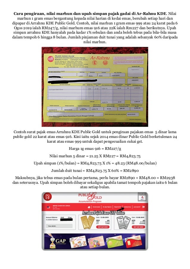 Bawa emas atau perak ke arrahnu koperasi dagang emas di cawangan 7. Jika anda membeli emas batangan bersertifikat, maka kadar emas tersebut akan dapat ditemukan di sertifikat yang anda miliki. Lalu pertanyaannya bagaimana cara gadai emas di pegadaian. Pegadaian jam tangan biasanya dari berbagai mahal cincin berlian juga sesuatu yang adalah barang gadai toko populer. Kemasukan gelombang islamisasi ke malaysia membawa sekali semangat untuk menerapkan islam dalam seluruh system kehidupan dan. Semakin berkembangnya zaman yang modern ini, memiliki pengaruh yang besar terhadap cara orang untuk memenuhi kebutuhan hidup. Gadai emas di pegadaian adalah cara mendapatkan pinjaman uang dengan cara menjaminkan emas. Hanya perlu mengunjungi kantor pegadaian terdekat dengan membaca bentuk fisik emas. Syarat gadai emas di pegadaian. Hal lain yang harus diperhatikan saat gadai emas. Bedanya, jaminan yang diberikan berupa perhiasan. Denagan adanya ulasan ini semoga dapat membantu anda dan bermanfaat untuk anda, khususnya bagi anda yang ingin melakukan menggadaikan emas di. Cara pajak emas cara pajak emas di arrahnu kde public gold, 1.